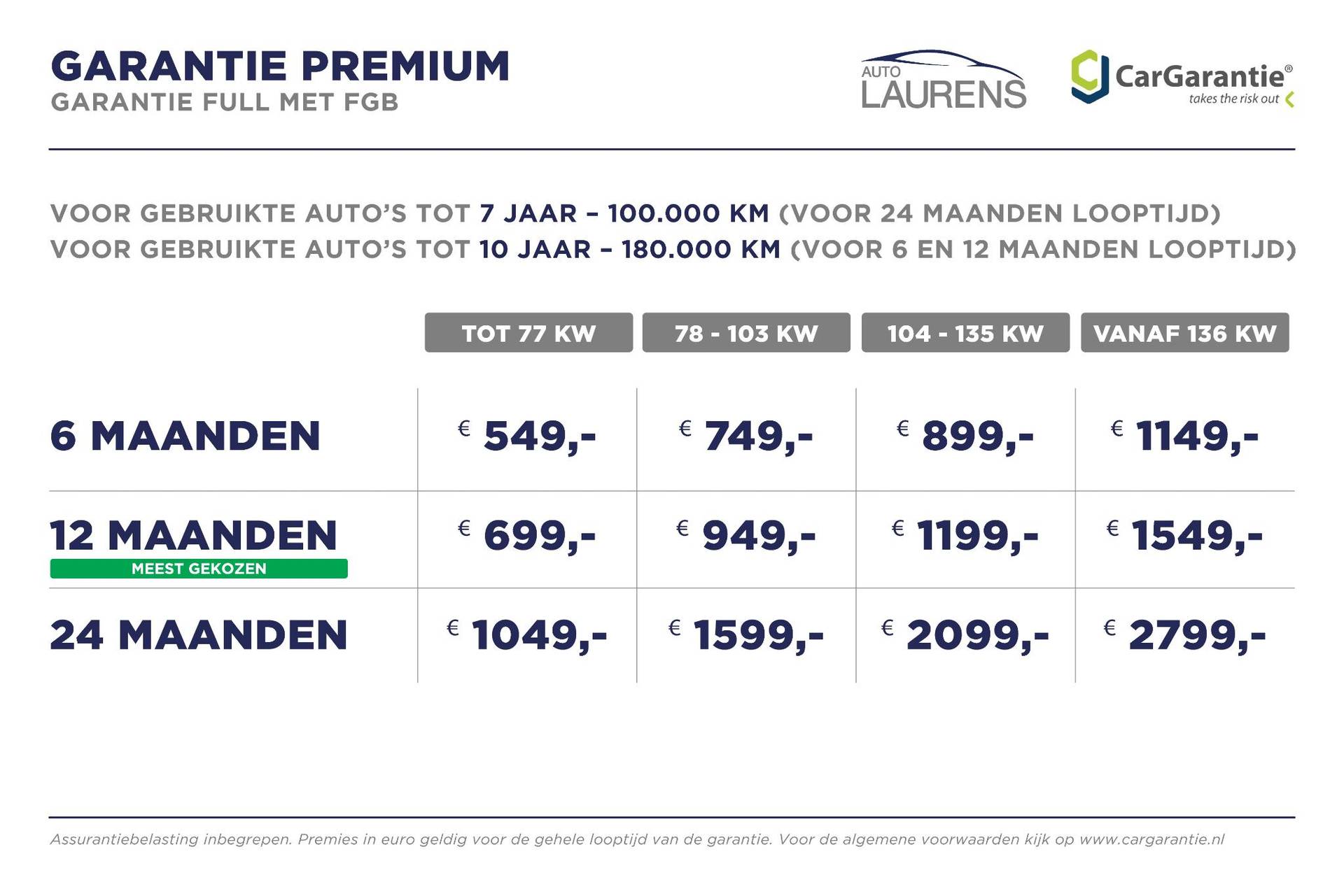 Bij het afsluiten van de koopovereenkomst dient de klant een pakket af te nemen van CarGarantie. Kijk op www.CarGarantie.nl voor meer informatie.