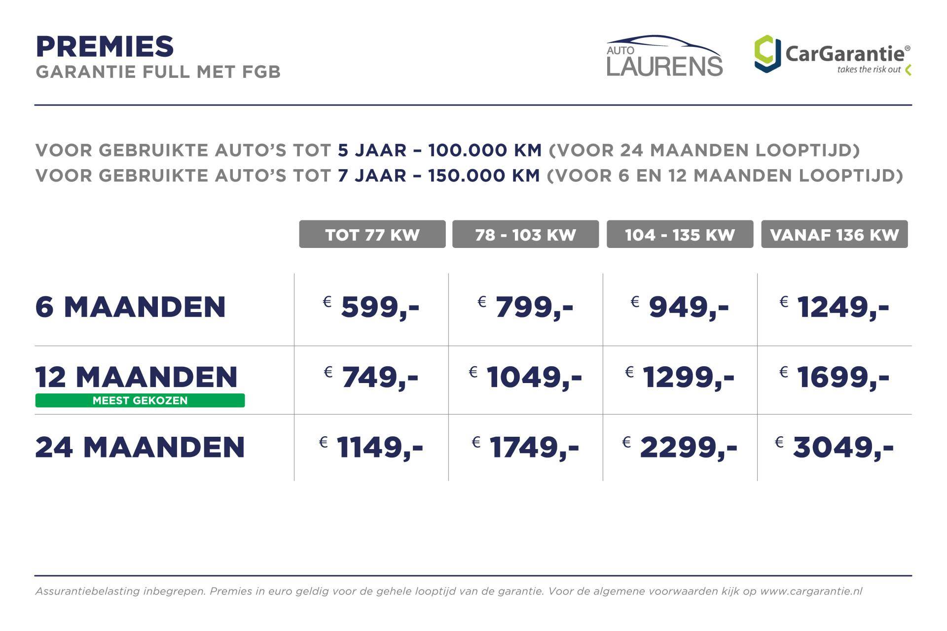 Bij het afsluiten van de koopovereenkomst dient de klant een pakket af te nemen van CarGarantie. Kijk op www.CarGarantie.nl voor meer informatie.